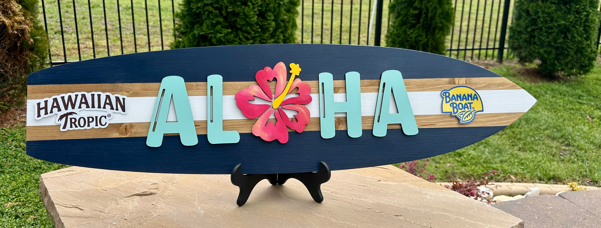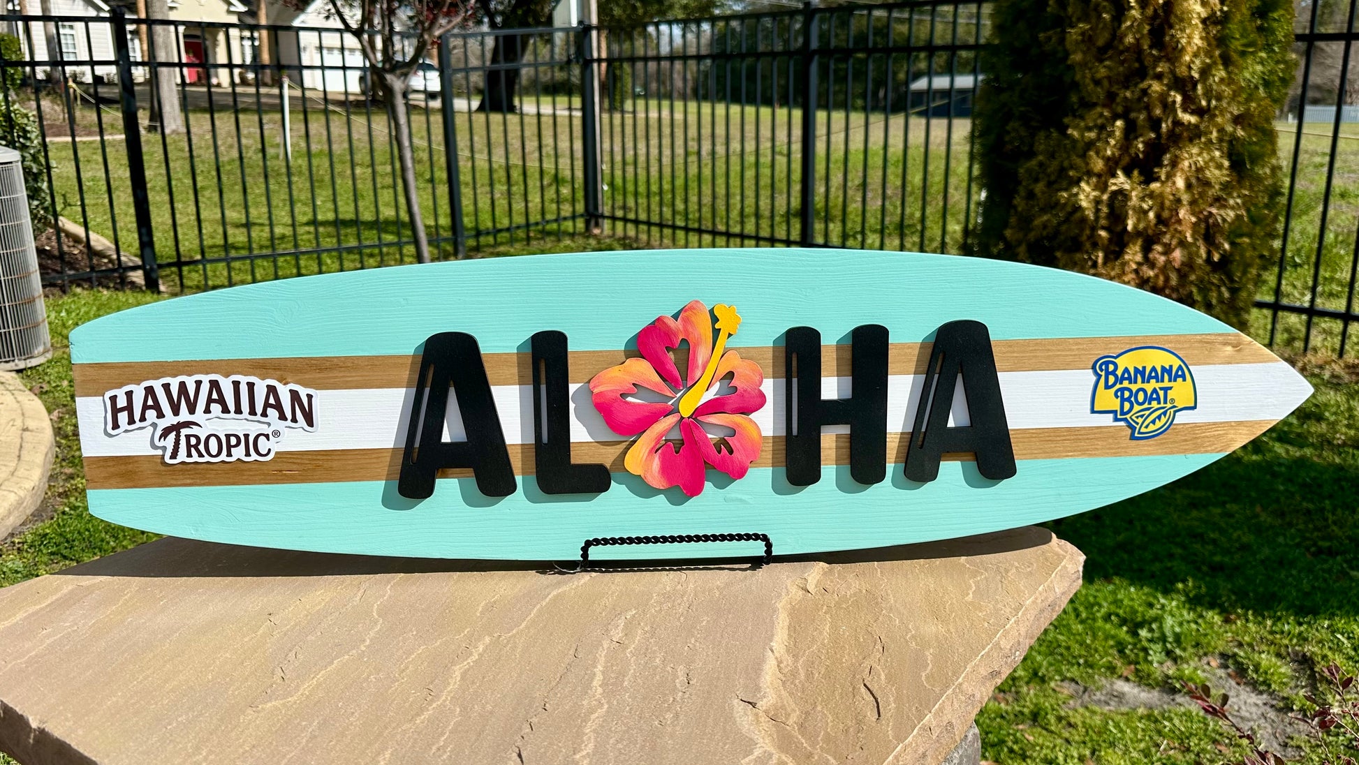 Hawaiian Tropic / Banana Boat ALOHA Surfboard Horizontal Sign (ACCOUNT REPS ONLY)