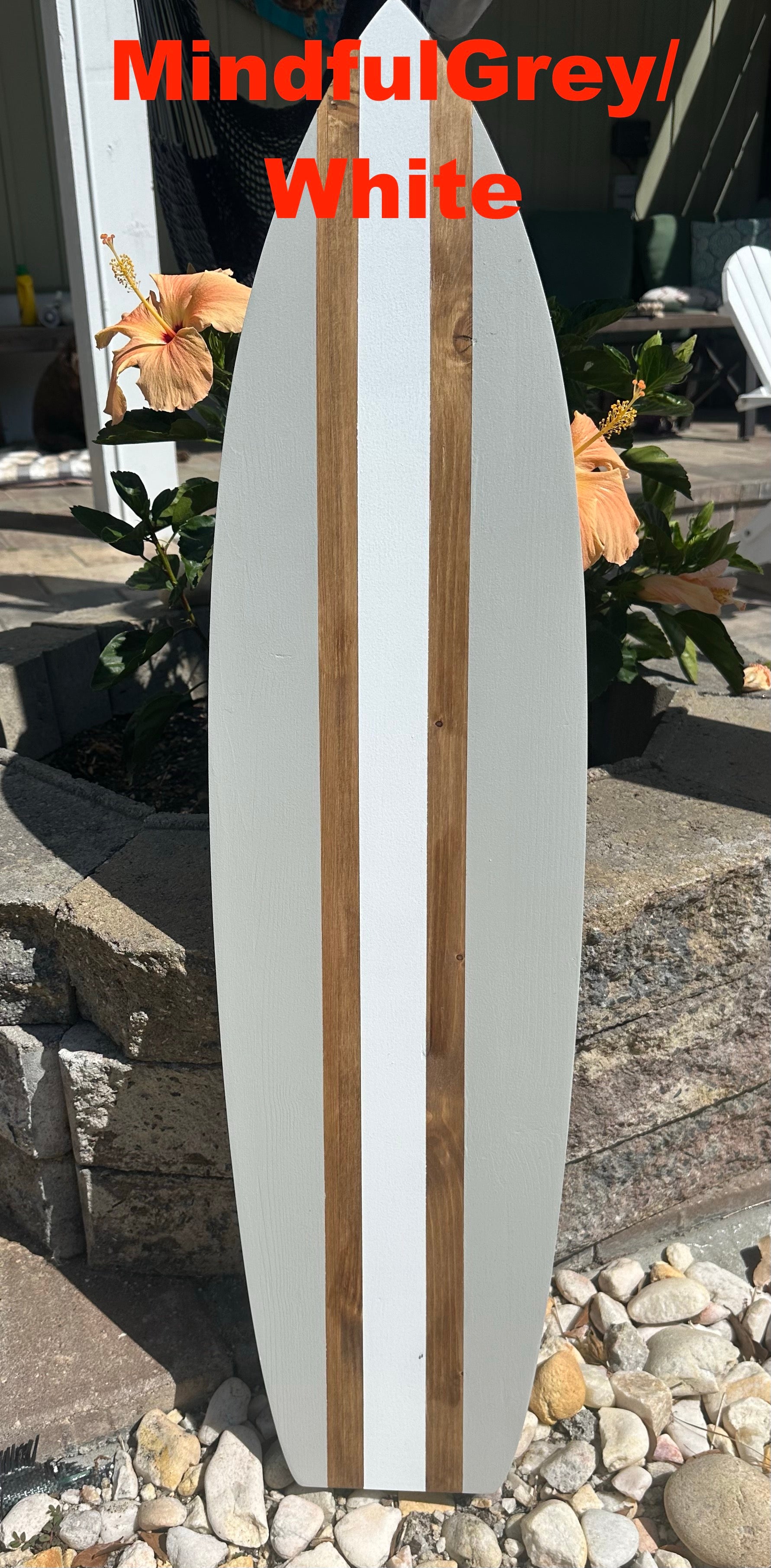 Our blank painted wood surfboards are handcrafted from premium 3/4" spruce pine, giving you a smooth, solid base with timeless surf style. Choose your size and custom color, finished with Behr exterior paint and sealed in a durable exterior spray polyurethane for long-lasting beauty. Perfect as wall art, signage, or a statement piece for any beach-loving space.